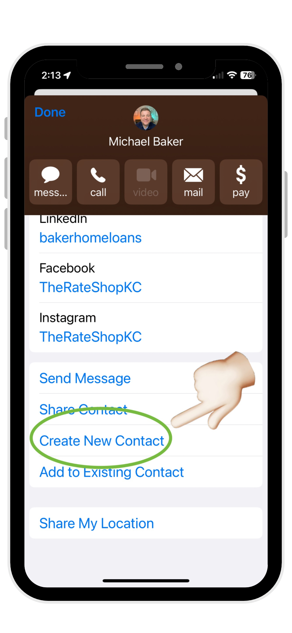 Click “+ Add Me to Contacts” button above. When contact card opens simply scroll to the bottom and click on “Create New Contact”.